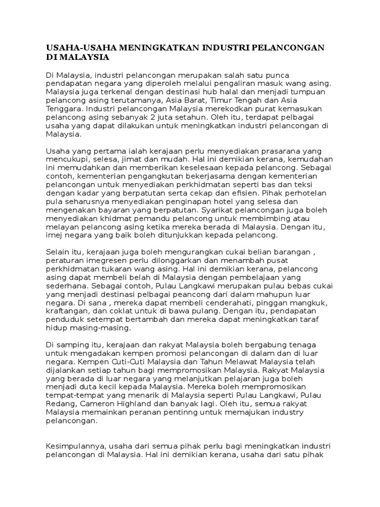 Usaha Usaha Meningkatkan Industri Pelancongan Di Malaysia Pdf